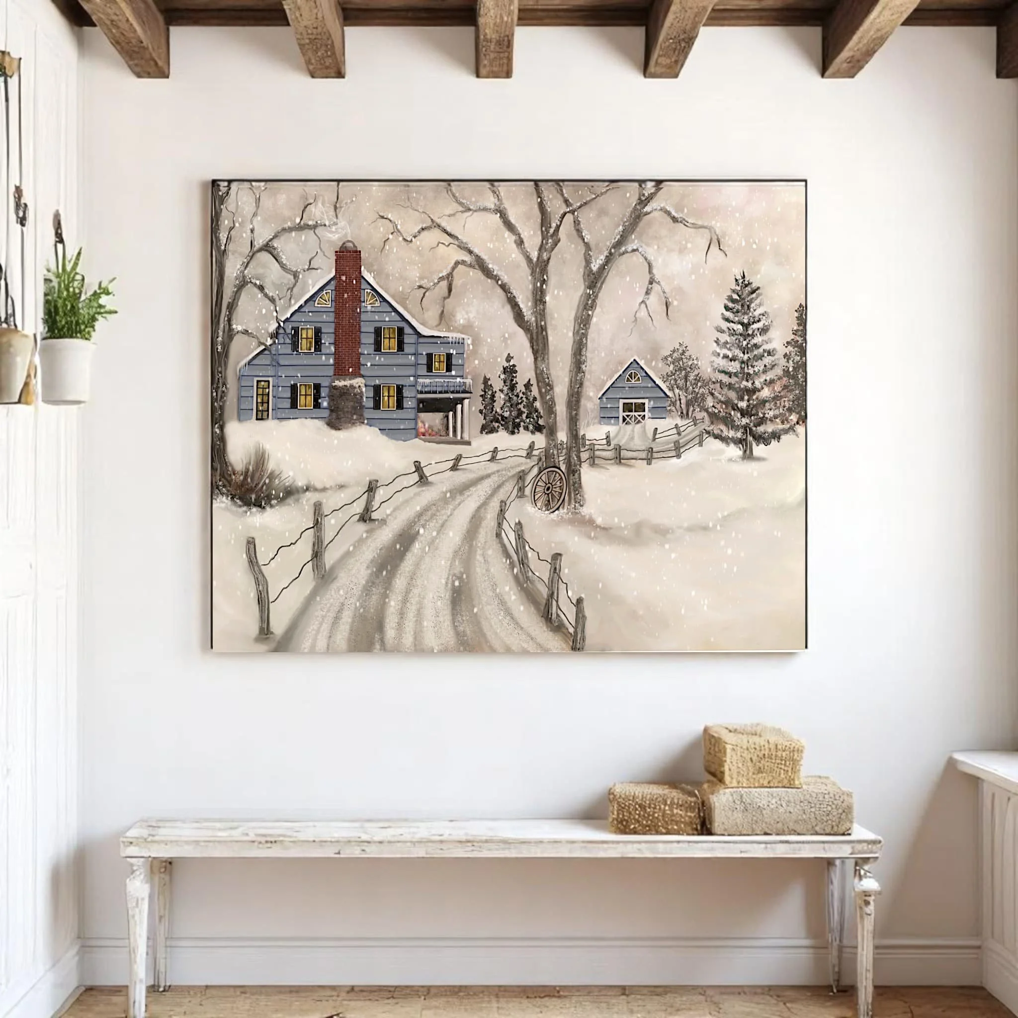 It's Snowing in the Country A Digital Print a original Digital Art piece created by Warwick arts showcases a harmonious fusion of tradition and modernity, featuring a scene of a snow-covered haven. The Print of a Digital Art captures a tranquil road and house in the country, evoking warmth and serenity in every pixel.